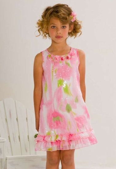*Monet's Garden* is just lovely! It is enhanced with tiny sequins, A-line shape, ruffles at hem, and flowers at the neckline. This dress will come to or below the knee!