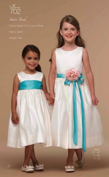 Us Angels -Satin Dress has a satin scoop neck sleeveless shell and a pleated satin skirt. The colored sash -and flower can be selected to match your event -Select the Dress - then add the color sash and flower- in a seperate seciton;